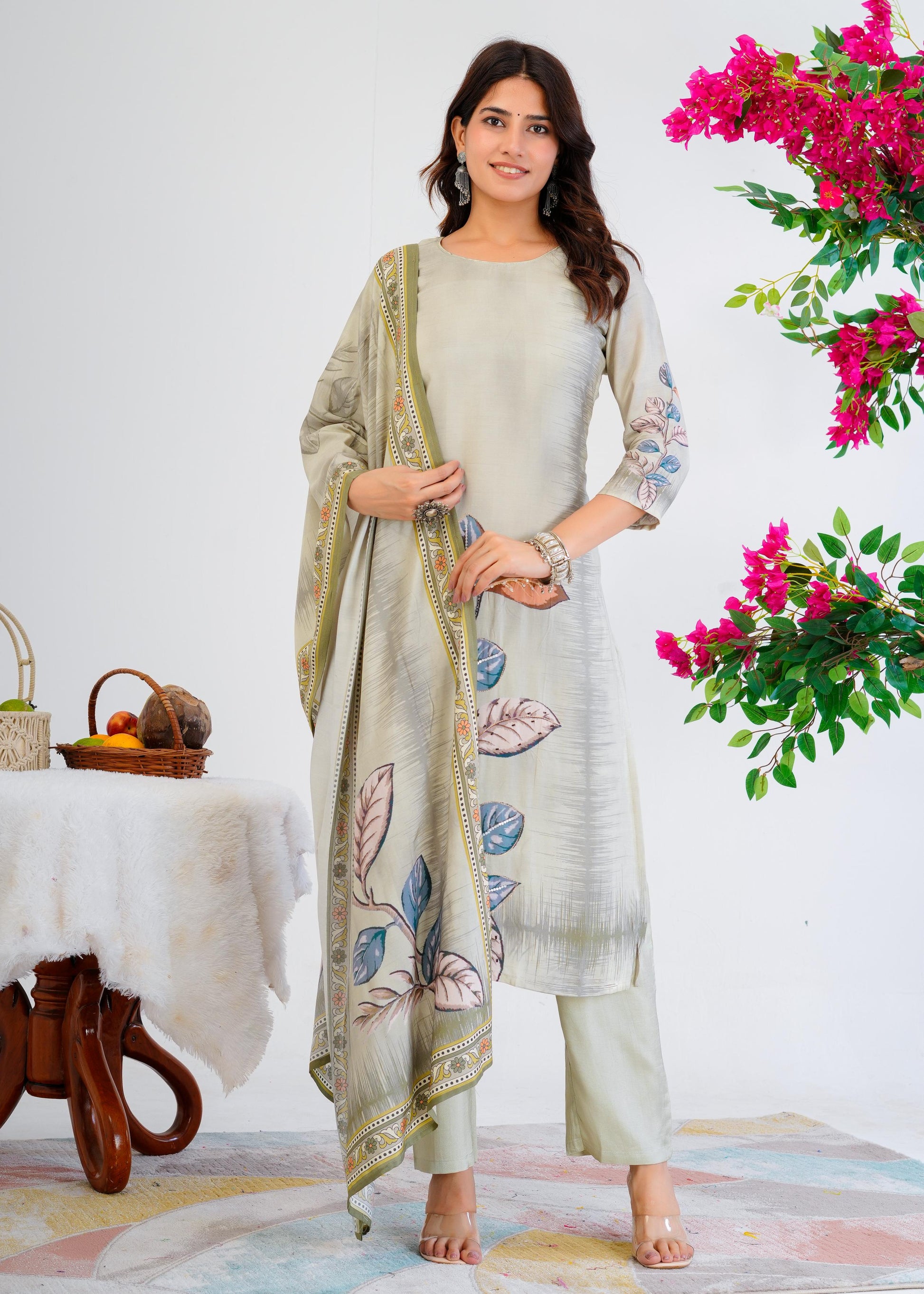 Cotton Floral Printed Straight Kurta Set With Dupatta
