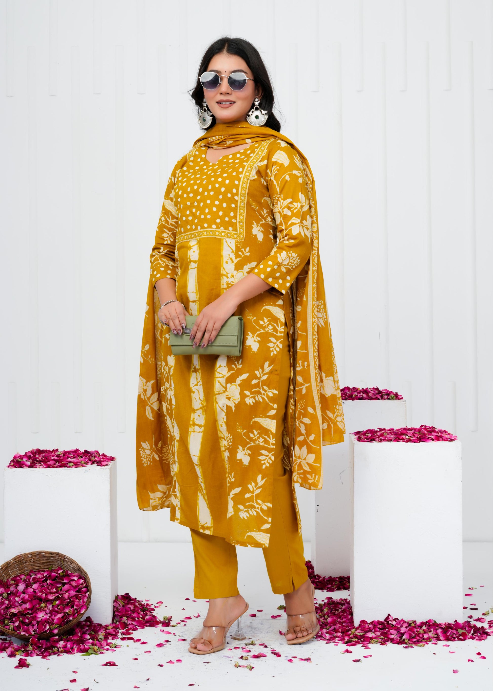 Elevate your everyday wardrobe with this refined cotton printed straight kurta set, designed for the modern woman who values both comfort and elegance. Crafted from breathable cotton fabric, this ensemble features an intricately printed pattern that adds visual interest while maintaining a timeless appeal. The straight silhouette offers a flattering, versatile fit suitable for casual gatherings, festive occasions, or leisurely days at home. Complemented by a coordinating dupatta, this three-piece set provides endless styling possibilities. Perfect for those seeking quality craftsmanship and understated sophistication in traditional wear.