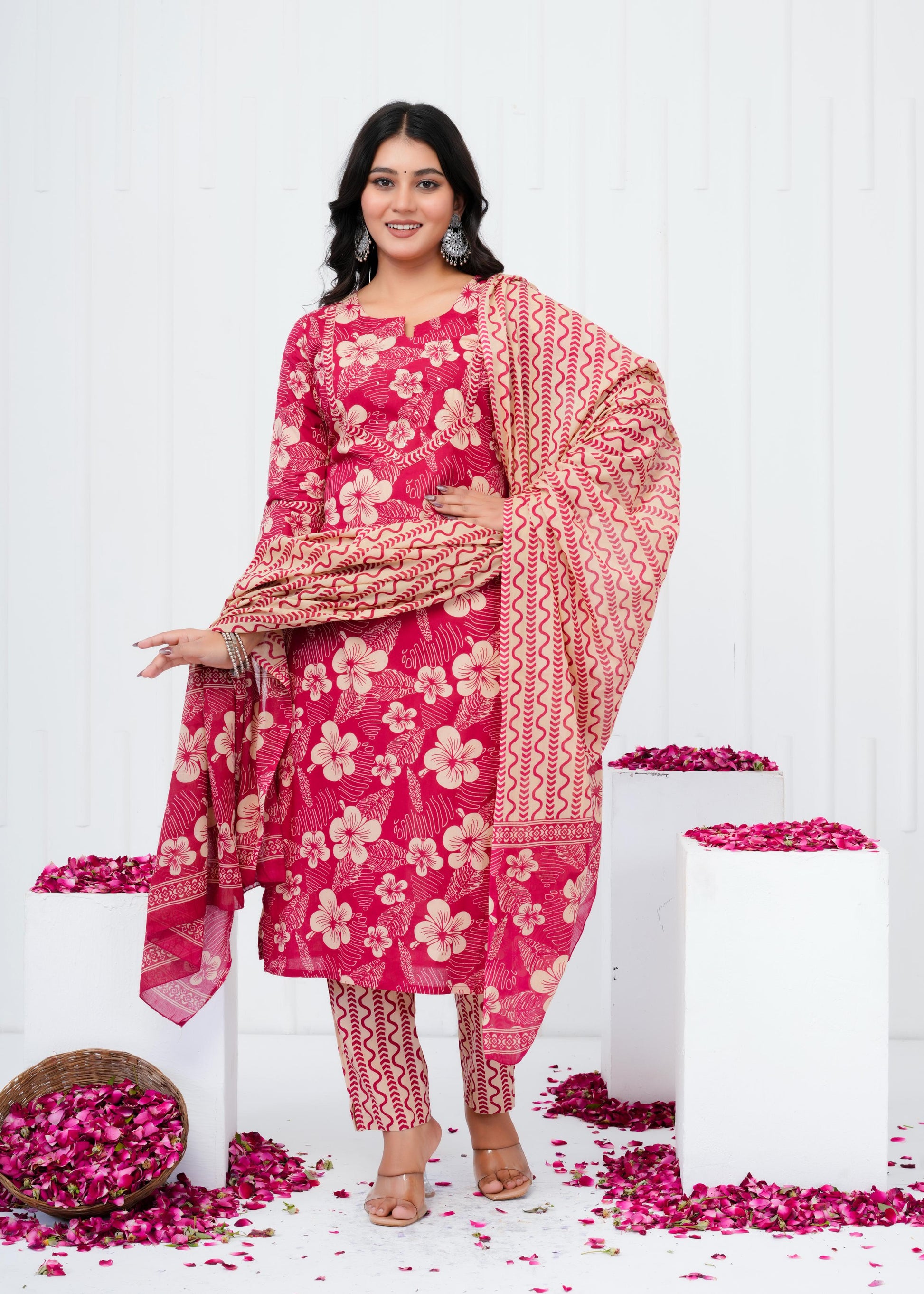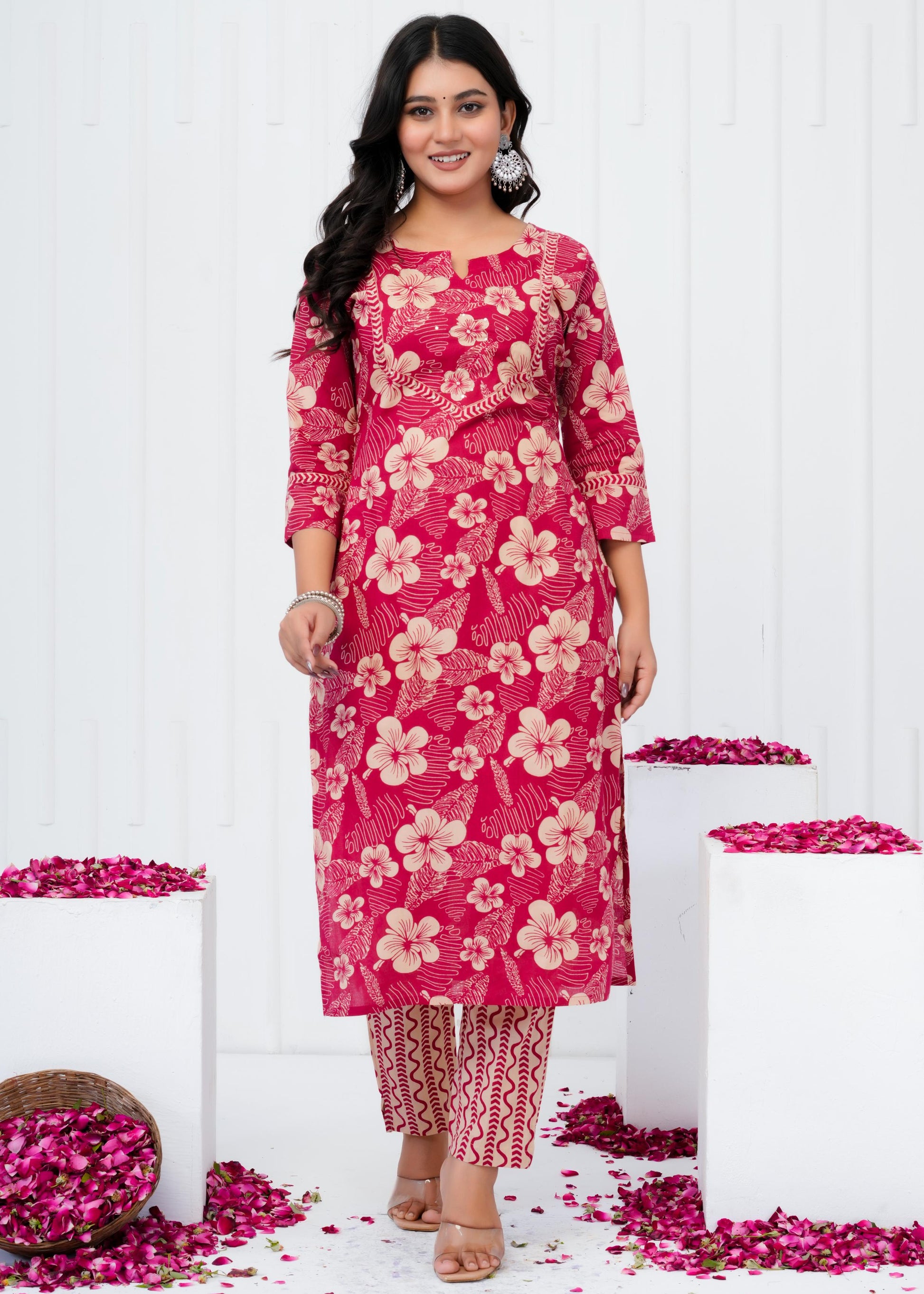 Elevate your everyday wardrobe with this refined cotton printed straight kurta set, designed for the modern woman who values both comfort and elegance. Crafted from breathable cotton fabric, this ensemble features an intricately printed pattern that adds visual interest while maintaining a timeless appeal. The straight silhouette offers a flattering, versatile fit suitable for casual gatherings, festive occasions, or leisurely days at home. Complemented by a coordinating dupatta, this three-piece set provides endless styling possibilities. Perfect for those seeking quality craftsmanship and understated sophistication in traditional wear.