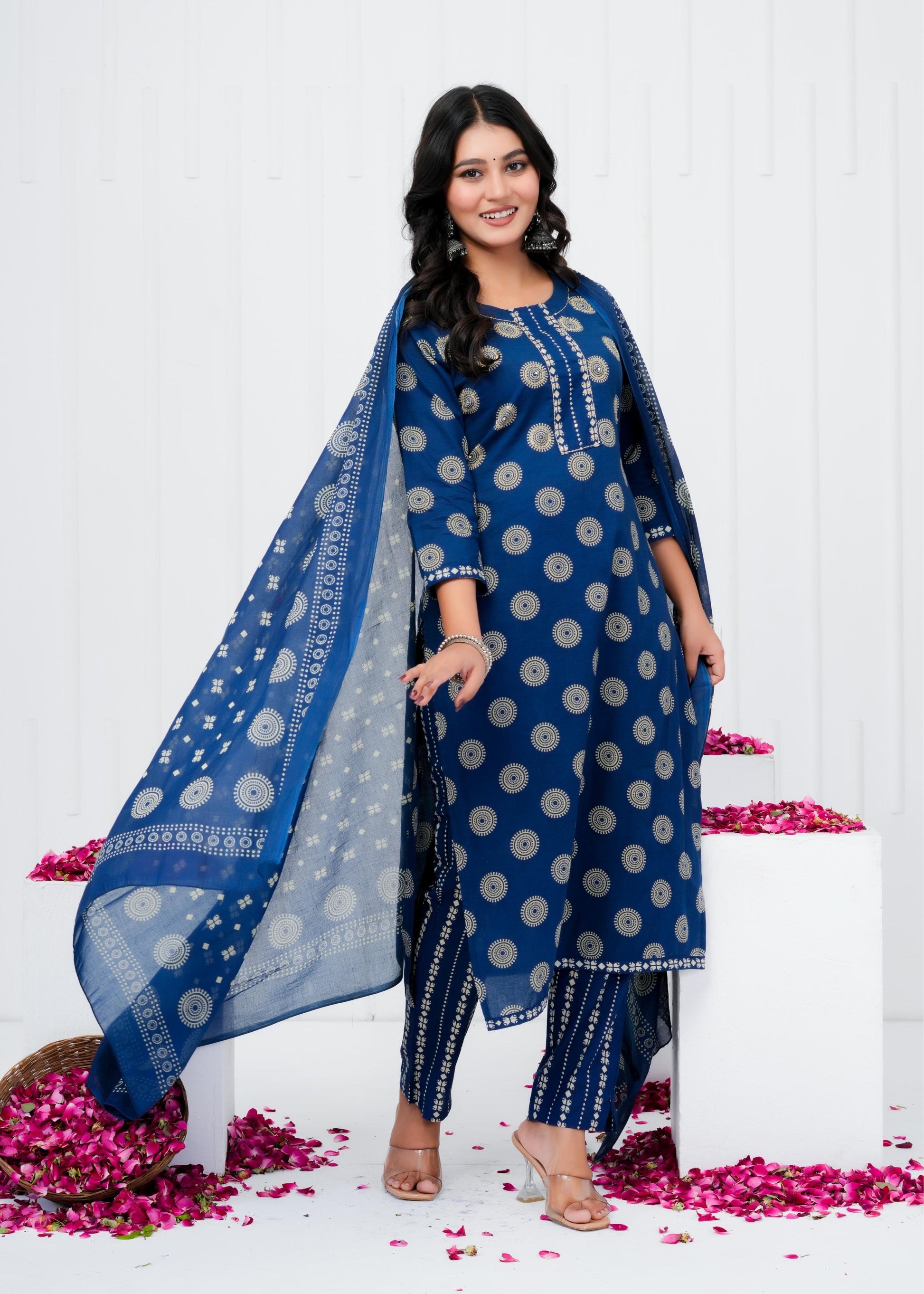Elevate your everyday wardrobe with this refined cotton printed straight kurta set, designed for the modern woman who values both comfort and elegance. Crafted from breathable cotton fabric, this ensemble features an intricately printed pattern that adds visual interest while maintaining a timeless appeal. The straight silhouette offers a flattering, versatile fit suitable for casual gatherings, festive occasions, or leisurely days at home. Complemented by a coordinating dupatta, this three-piece set provides endless styling possibilities. Perfect for those seeking quality craftsmanship and understated sophistication in traditional wear.